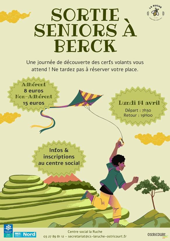 Le Centre Social La Ruche vous invite à Berck pour assister à un incroyable spectacle de cerfs-volants lundi 14 Avril 2025 ! Rendez-vous à 7h30 au Centre-Social LA Ruche Ostricourt Retour prévu à 19h00Tarifs :